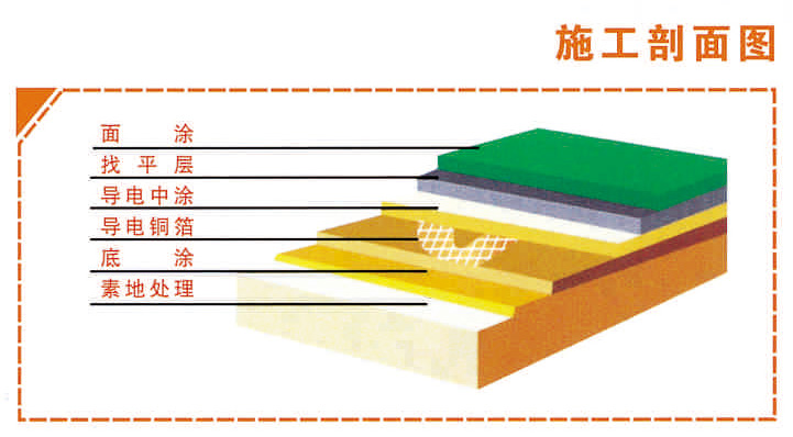 導(dǎo)電中涂:用環(huán)氧樹脂防靜電中涂料,用鏝刀平刮